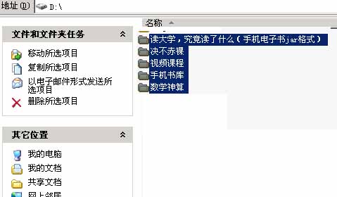 2、假设要管理D盘,打开D盘,将D盘上有5个文件夹,ctrl+a全部选中,ctrl+c复制;