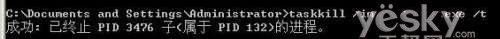 命令生效后,system.exe这个病毒进程就被终止,随后系统会返回这个病毒的守护进程的PID号码(图4),根据返回的PID号码可以找到守护进程。看到这里,大家是不是觉得手工杀毒并不难?