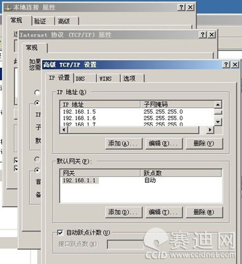 本地连接属性-->TCP/IP协议属性--->高级--->IP设置内添加IP