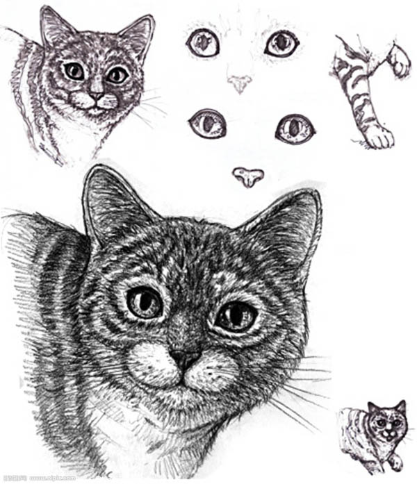 效果图刻画的非常逼真,不管是小猫的神态和神韵都表现的非常完美。当然要完成如此细腻的图片,需要花费大量的时间,尤其是在刻画绒毛的时候,几乎每一根都需要用涂抹工具等涂出来。绘制的时候一定要有耐心。