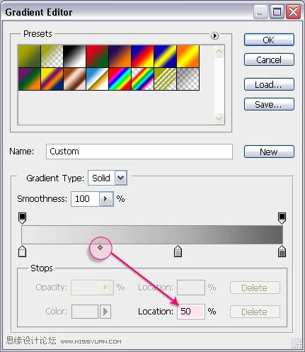 3、创建一个三色的渐变(可以通过点击色标滑块添加颜色),左侧颜色为#e9e9e9,右侧为#636363,中间颜色为#b3b3b3,确保中间颜色的位置是60%。