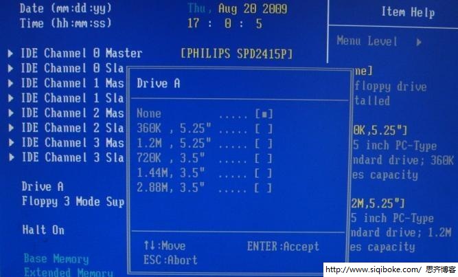 如今的电脑基本都不用软驱了,但是主板在设计时候还是支持软驱,这样在Windows系统上总是多一个软驱盘,实际上根本用不着,所以就可以直接在BIOS里头关掉,首先选择Standard Bios features,然后有个DRIVEA选项,移动到该项上回车,选择NONE或DISABLE即可关掉。
