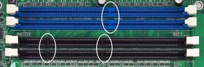 内存插槽是主板上用来安装内存的地方。目前常见的内存插槽为SDRAM内存、DDR内存插槽,其它的还有早期的EDO和非主流的RDRAM内存插槽。需要说明的是不同的内存插槽它们的引脚,电压,性能功能都是不尽相同的,不同的内存在不同的内存插槽上不能互换使用。对于168线的SDRAM内存和184线的 DDR