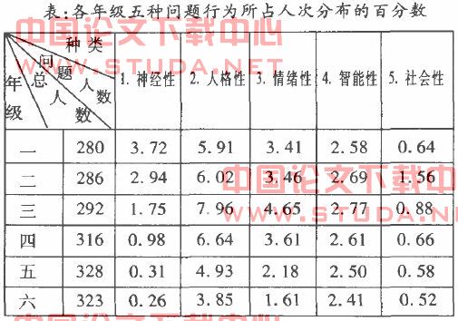 小学各年级学生问题行为所占比例及分布情况见下表。