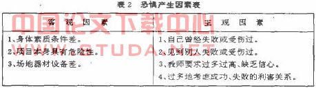 引起学生产生恐俱心理的原因虽然复杂.主要不外乎两个方面因素二(客观因紊和主观因素),如表2