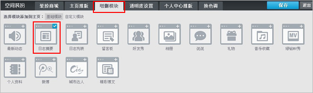 第二步:然后点击“增删模块”,把您想显示的模块方框里打勾,最后“保存”您的操作。